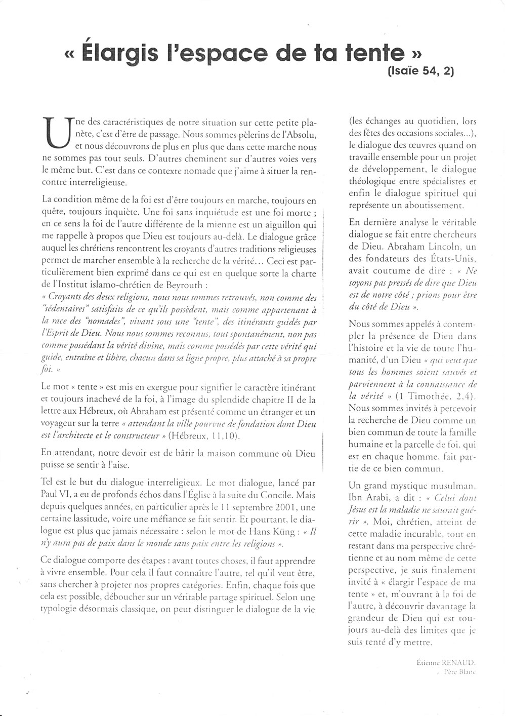 In memoriam Etienne RENAUD Parcours ---> biographie ---> références Conférences Islam Ecrits ---> articles ---> homélies Iconographie ---> aquarelles ---> photos Témoignages ---> messe à Marseille ---> messe à Paris ---> autres > Association "Les amis d'Etienne Renaud" > Contacts
